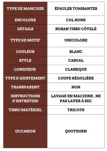 Matière : Tricot torsadé doux et haut de gamme.