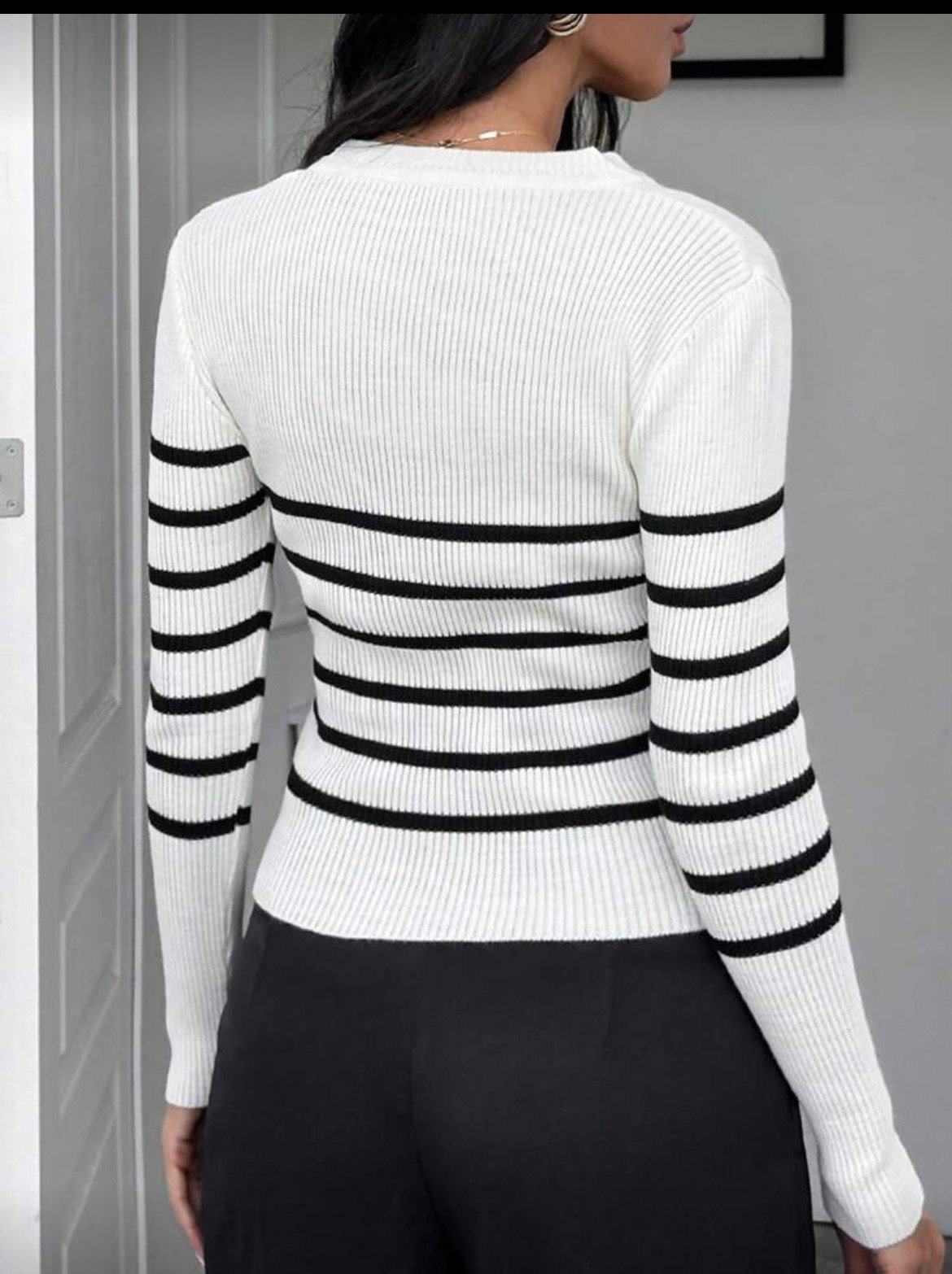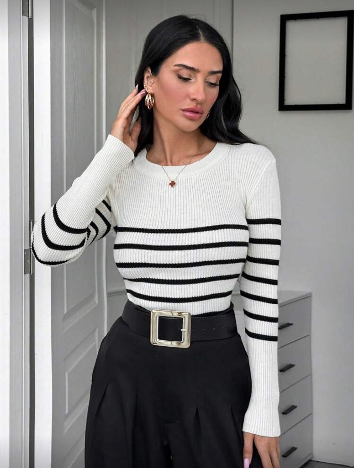 Le style : Ce pull rayé noir et blanc est l’essentiel du vestiaire chic et intemporel. Sa maille côtelée et son motif marinière apportent une touche de distinction « Old Money » à votre garde-robe, idéale pour un look sophistiqué en toute circonstance.